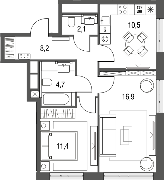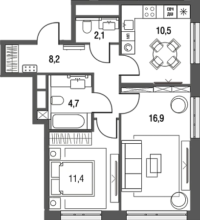 Купить 2к квартиру 55 м² в ЖК Сиреневый парк
