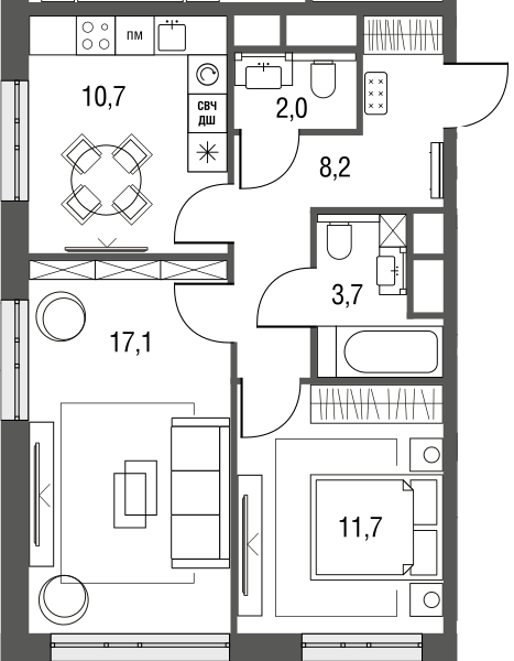 Купить 2к квартиру 55 м² в ЖК Сиреневый парк