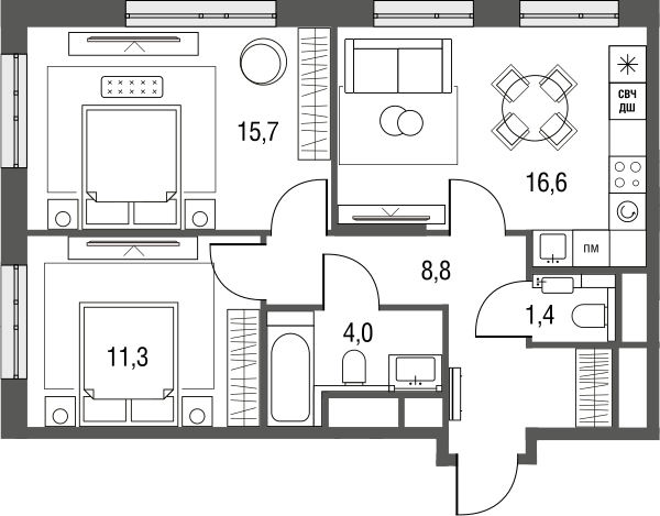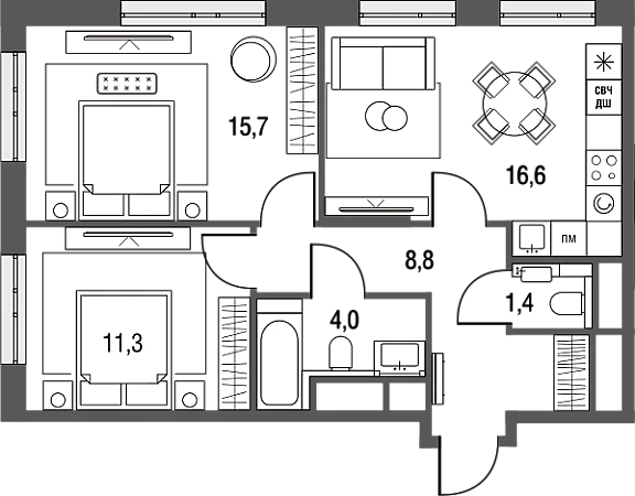 Купить 3к квартиру 59 м² в ЖК Сиреневый парк