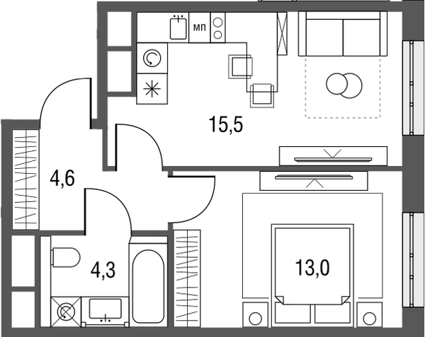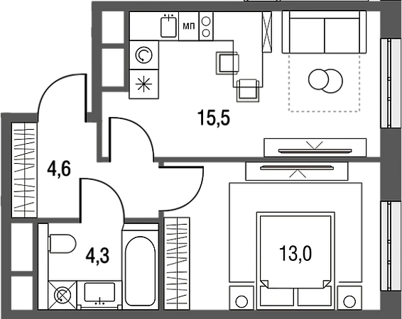 Купить 1к квартиру 38 м² в ЖК Сиреневый парк