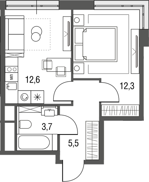 Купить 1к квартиру 35 м² в ЖК Сиреневый парк