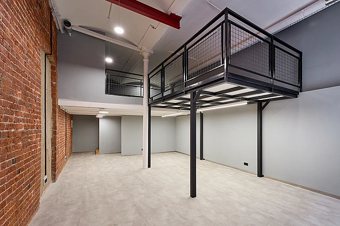 Площадь 103,4 м2 Высота потолков - 5м2 Есть антресоль Своя мокрая точка Выполнена отделка в стиле loft Стильная, благоустроенная территория Свободный доступ 24/7
