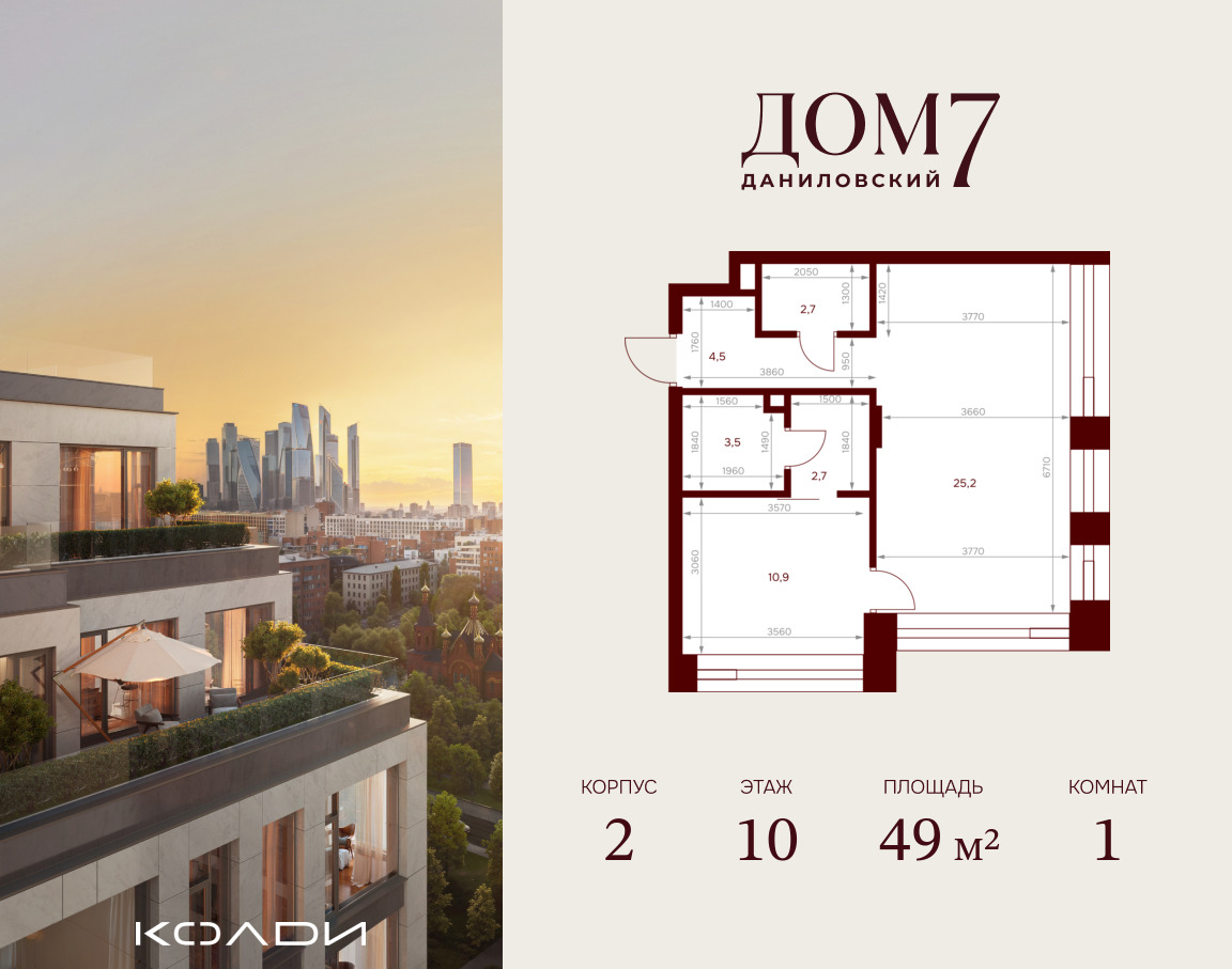 Купить 1к квартиру 49 м² в ЖК Дом 7 Даниловский