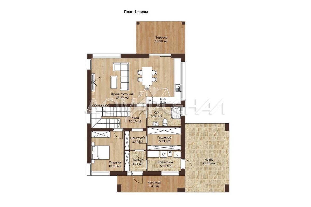 Новый теплый жилой дом, площадью 247 м2, подходит для круглогодичного проживания. На первом этаже: гостиная 24 кв. м, кухня-столовая 20 кв. м с выходом на открытую террасу 18 кв.м, комната, прихожая 20 кв.м, раздельный санузел, бойлерная и гардеробная. На втором этаже холл, раздельный санузел, гардеробная и четыре комнаты (три спальни и кабинет).