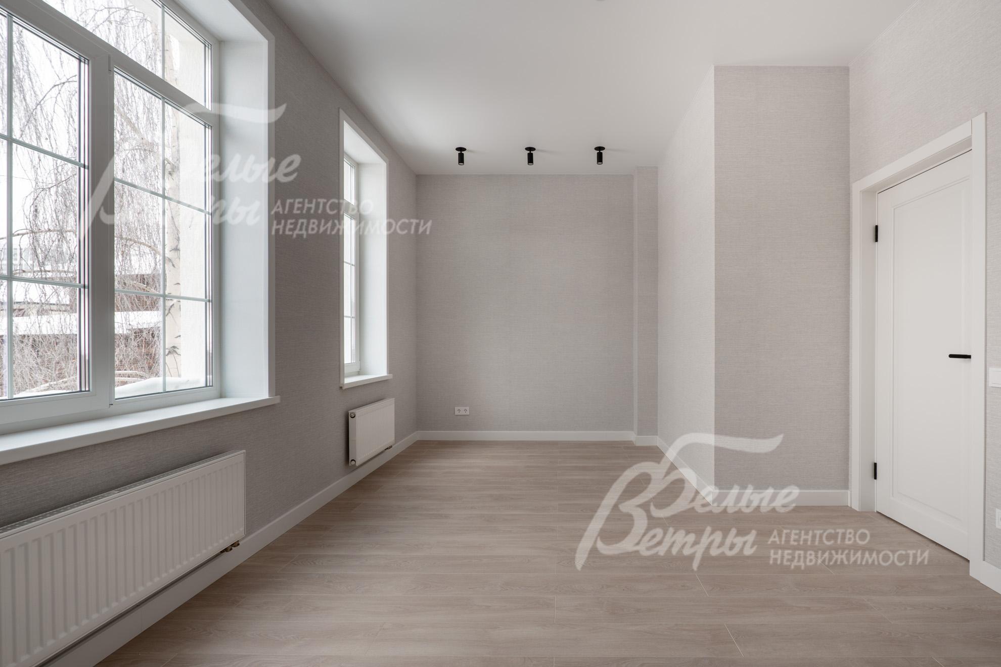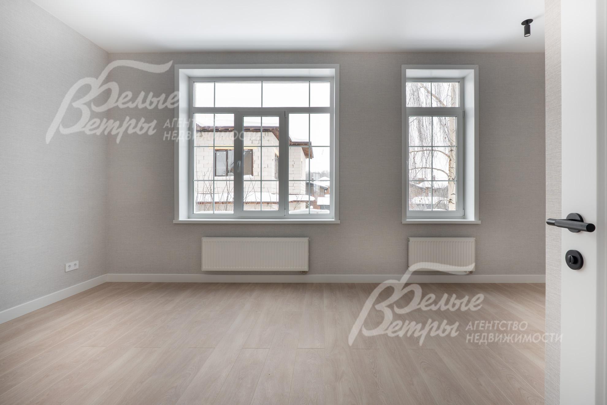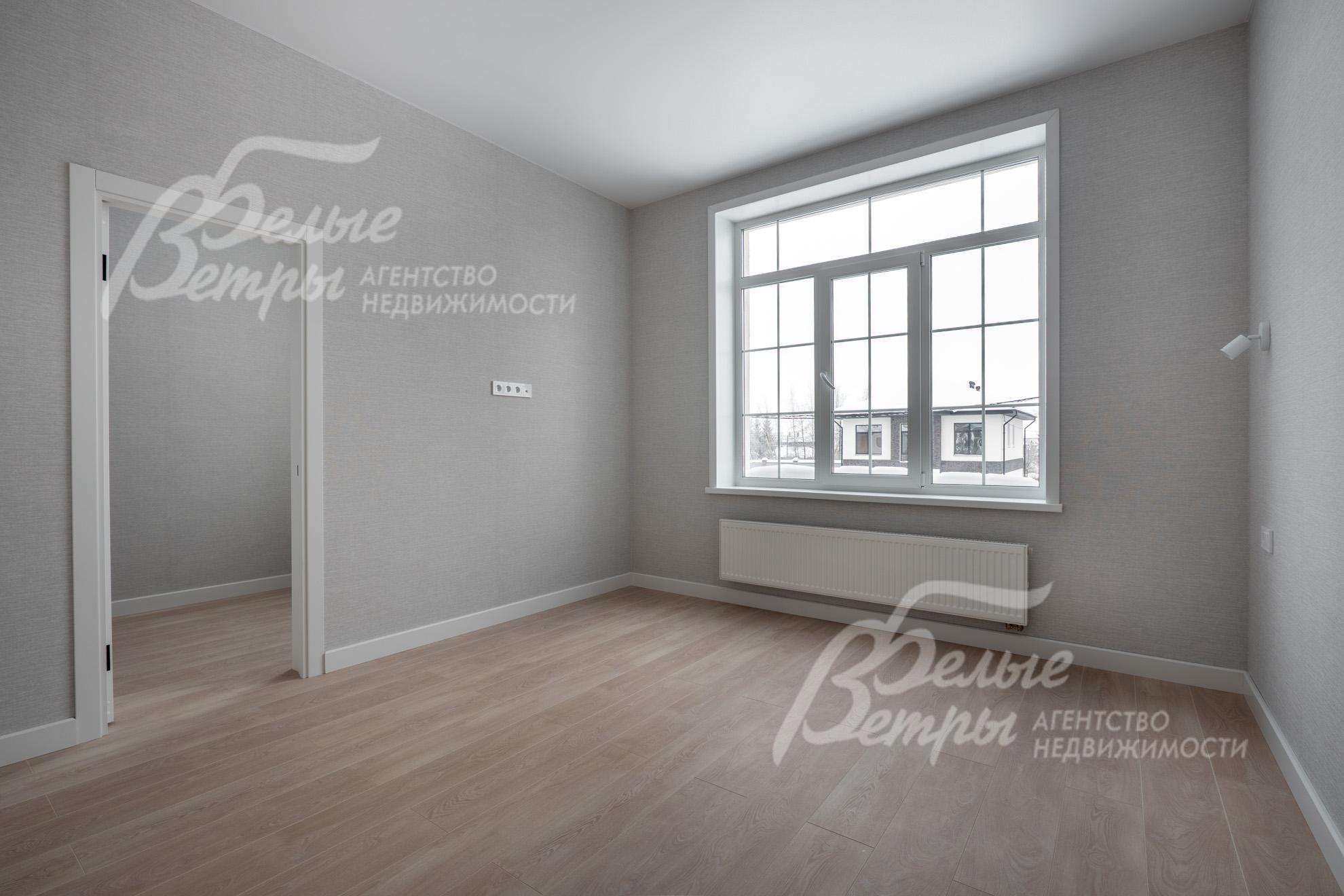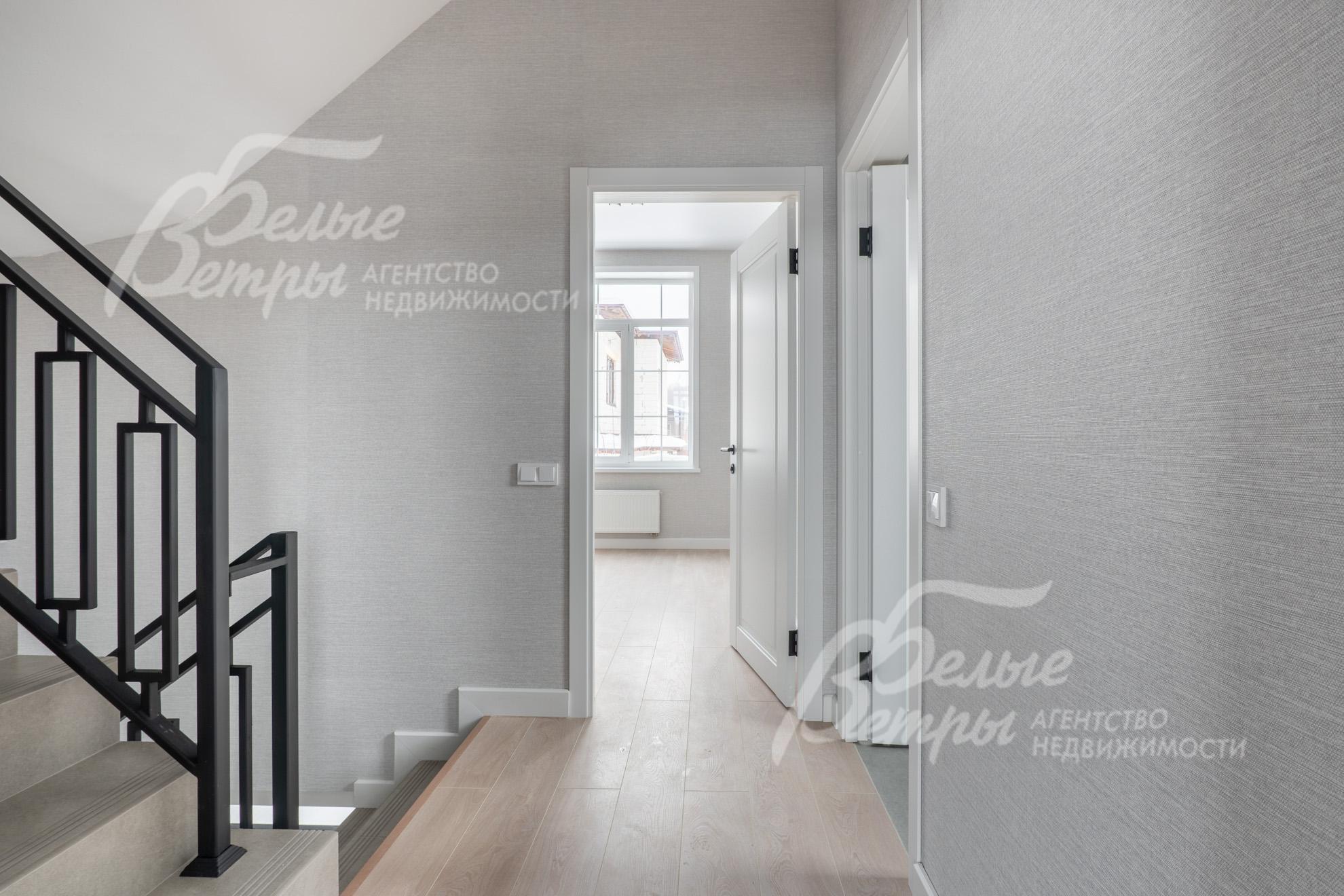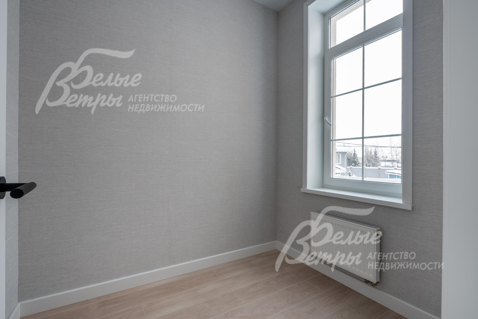 Внутренняя отделка: на стенах поклеены обои флизелиновые, зарубежные. Разведен водяной теплый пол, отделка пола - качественный ламинат на 1 этаже, в санузлах - керамогранит Kerama marazzi. Лестница на монолитном основании шириной 1 метр, ступени отделаны керамогранитом Kerama marazzi, ограждение - ковка. Натяжные потолки. Установлена сантехника: ванная Reimar, раковина Sanita Luxe, инсталляции Grohe. Установлены радиаторы Kermi. Деревянные межкомнатные двери, производитель ALBERO..
