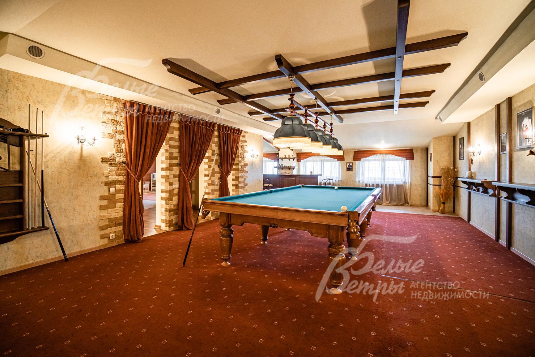 Важные опции: бассейн (9*3.5м, с римским входом); сауна; терраса; камин; холодный подвал; машиномест крытых: 4; Бильярдная (русский стол 12 футов) с мини-кухней и баром.