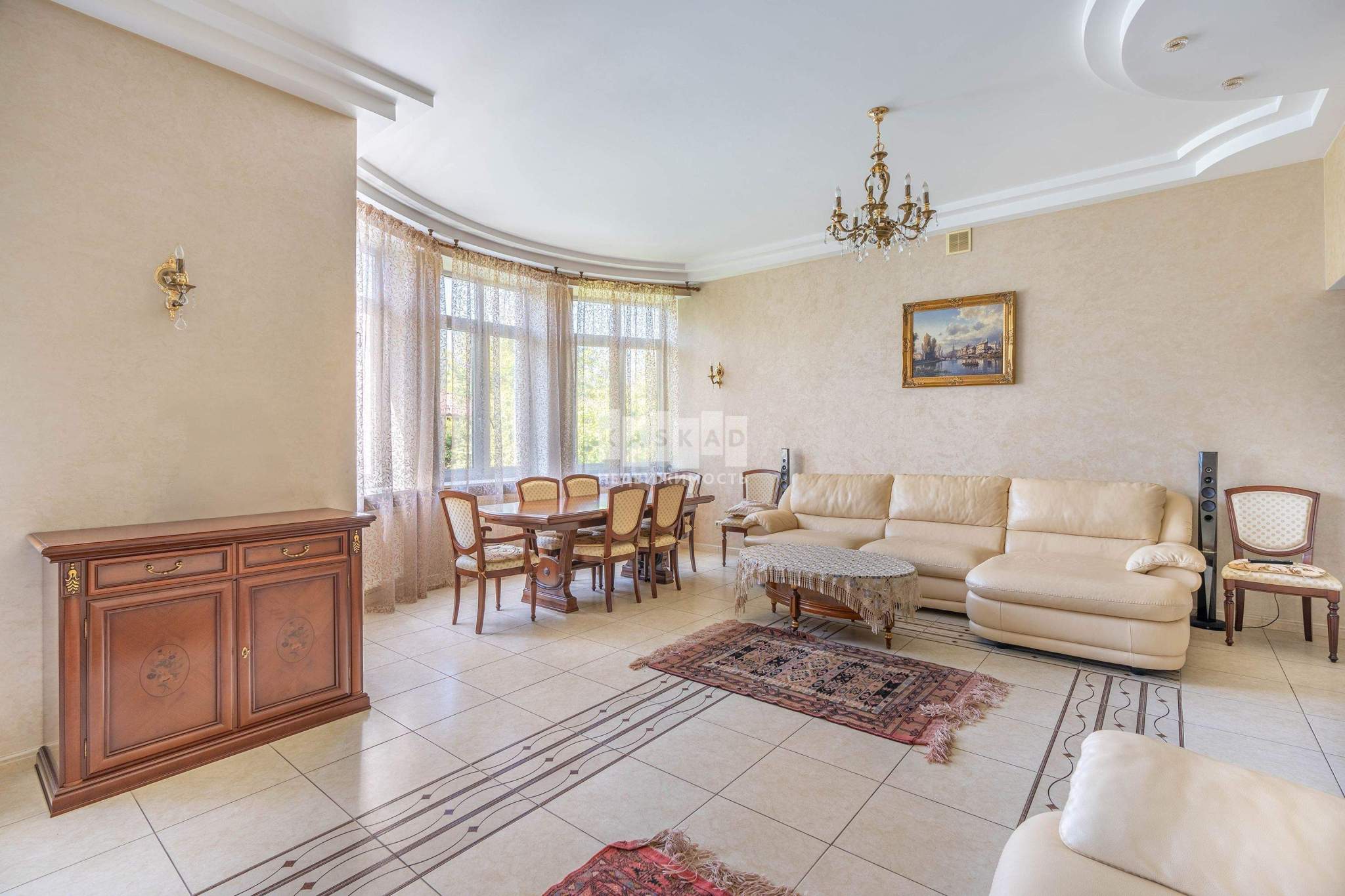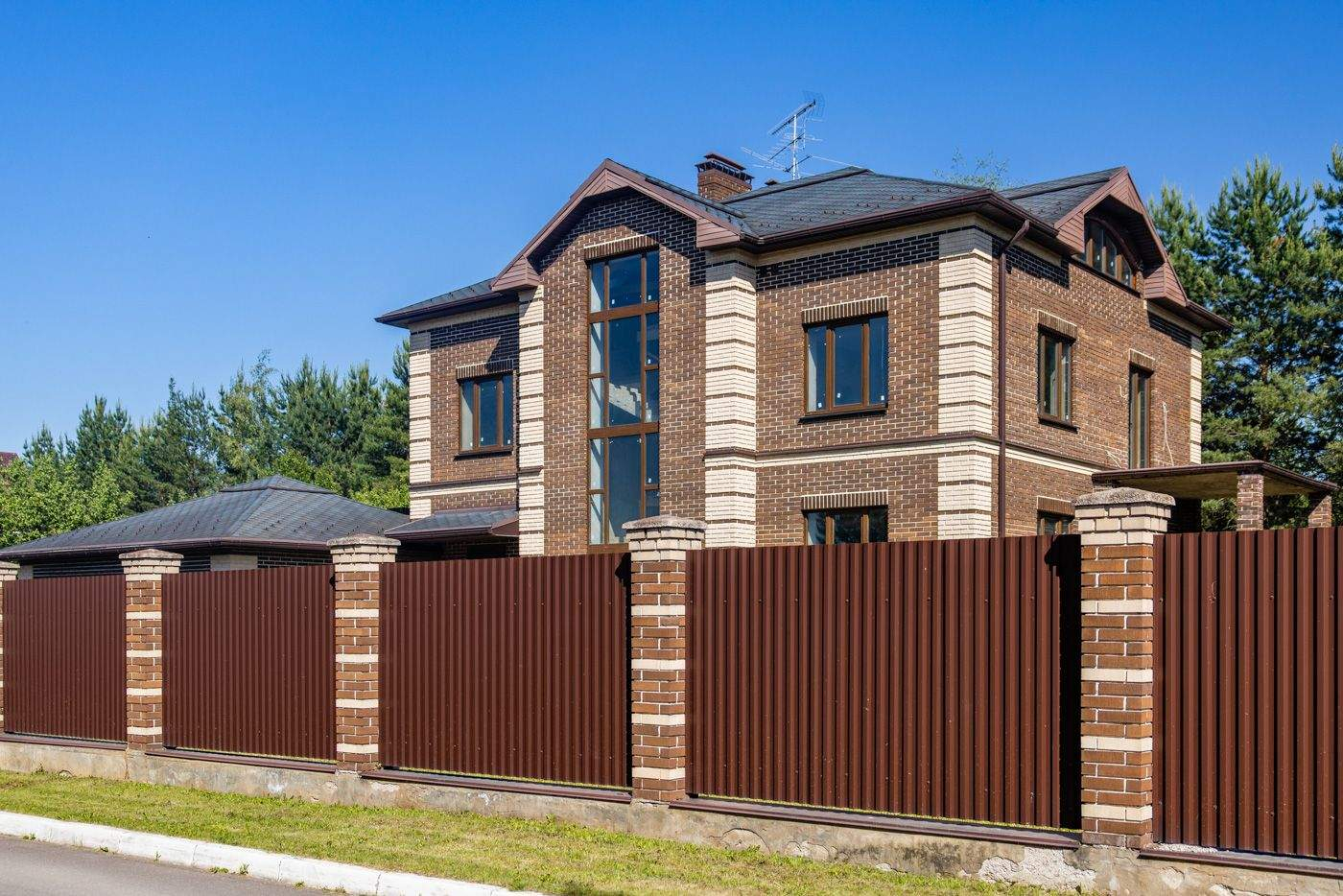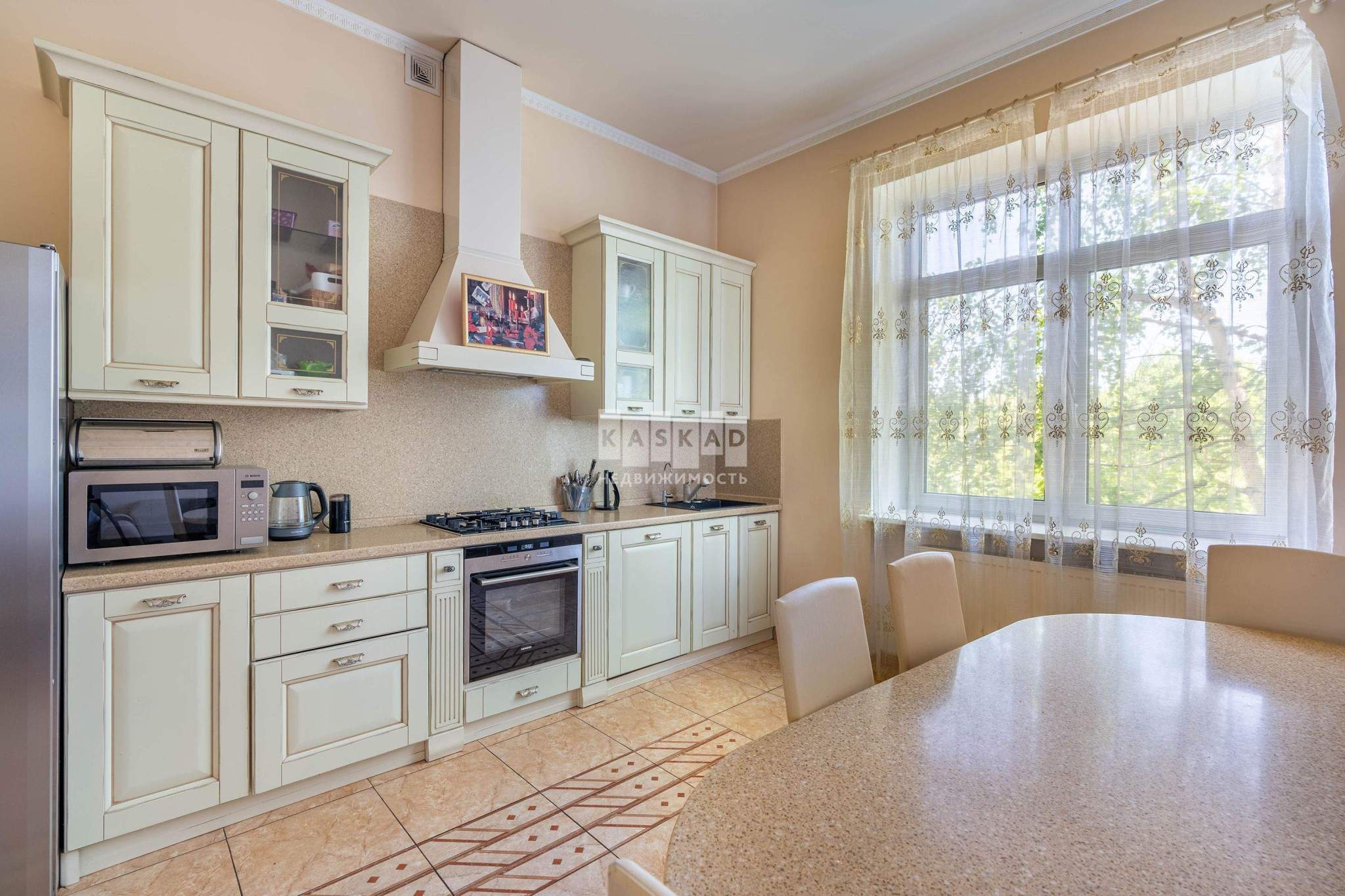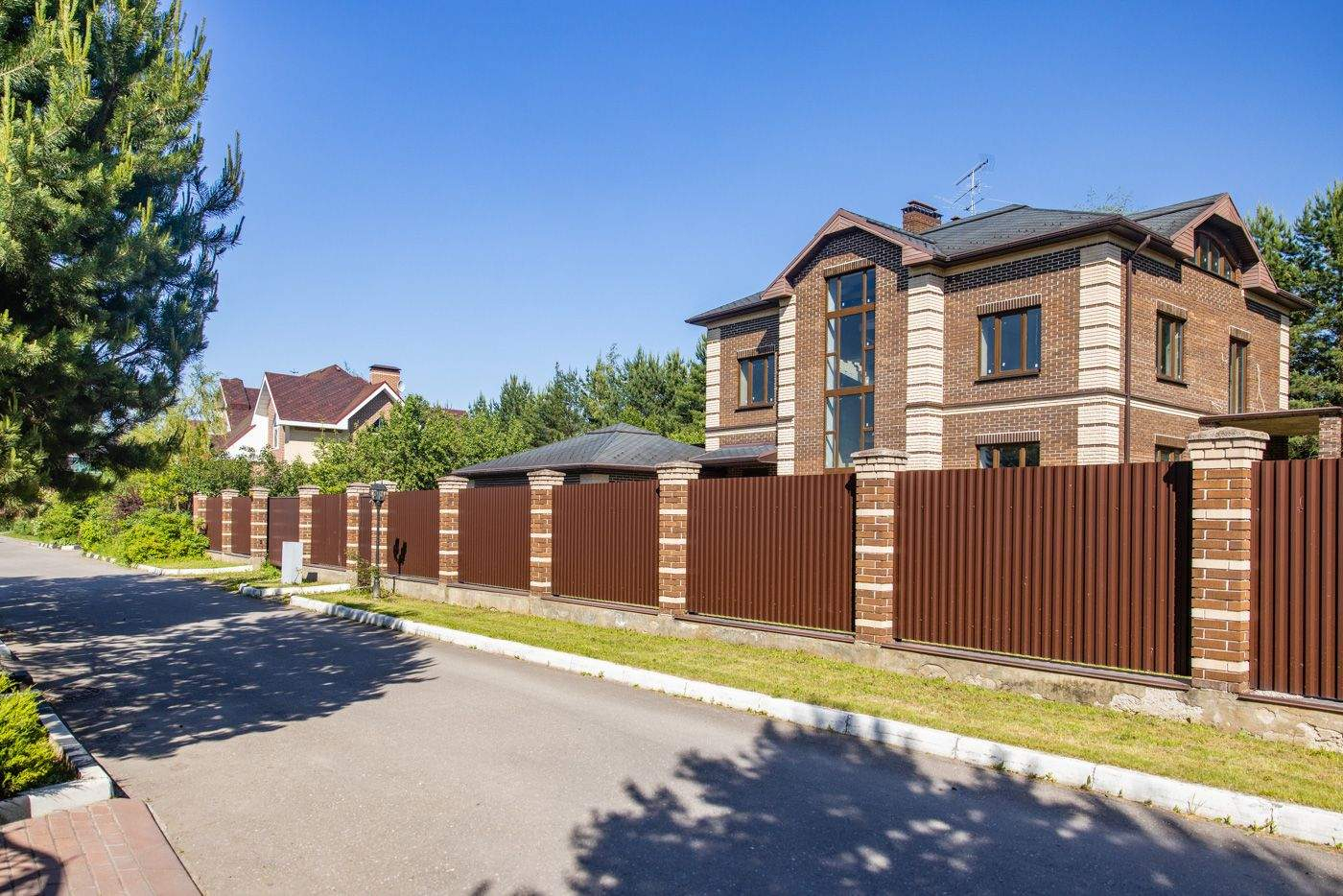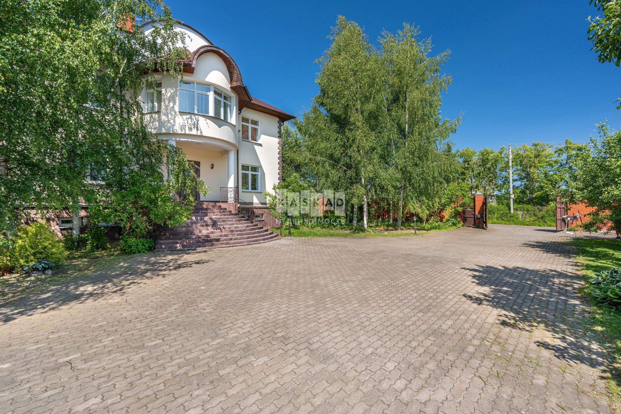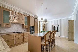 Основной дом общей площадью 564 квадратных метра, возведенный в 2006 году по эксклюзивному проекту. Основа дома - монолитный фундамент, крыша покрыта гибкой черепицей KATEPAL. Стены выполнены из кирпича толщиной 80 см. В кухонной зоне и ванных комнатах установлена система теплых полов. Панорамное остекление и потолки высотой 3,15 м наполняют дом светом и создают ощущение простора. Напольное покрытие - паркетная доска высокого качества. Лестница украшена коваными элементами. Дом полностью укомплектован мебелью и бытовой техникой. Мебель в спальнях изготовлена по индивидуальному заказу в Италии, двери выполнены из массива дуба. Мансардный этаж можно использовать для хранения вещей. В цокольном этаже расположена сауна HARVIA из лиственницы. Котельная оборудована премиальным оборудованием, включая газовый котел BUDERUS Германия и мощную систему водоочистки.