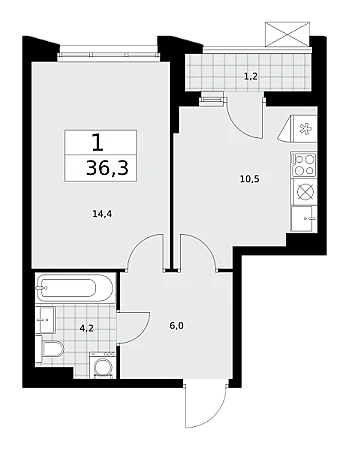 Купить 1к квартиру 36 м² в ЖК Деснаречье