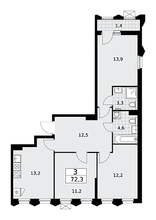 Купить 3к квартиру 72 м² в ЖК Деснаречье