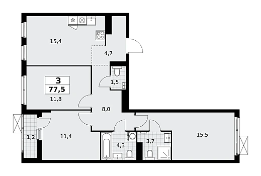 Купить 3к квартиру 77 м² в ЖК Деснаречье