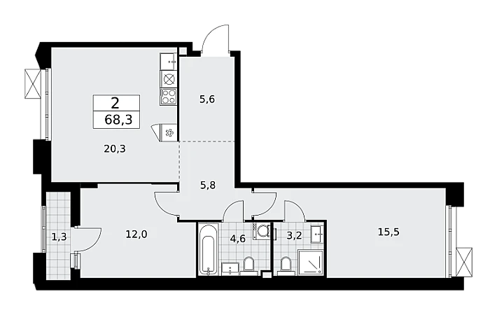 Купить 2к квартиру 68 м² в ЖК Деснаречье
