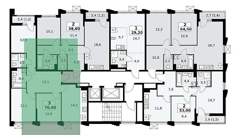 Купить 3к квартиру 70 м² в ЖК Деснаречье