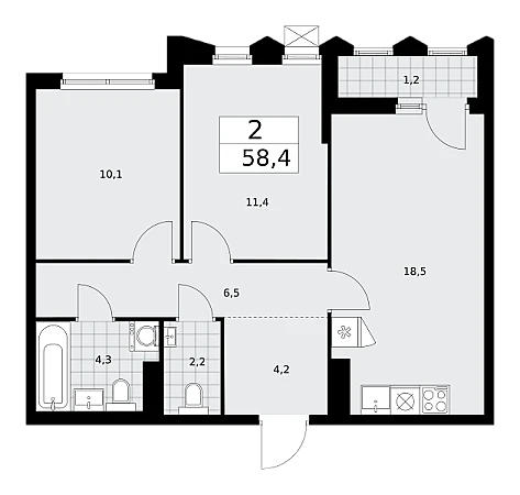 Купить 2к квартиру 58 м² в ЖК Деснаречье