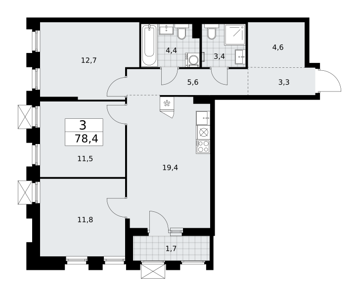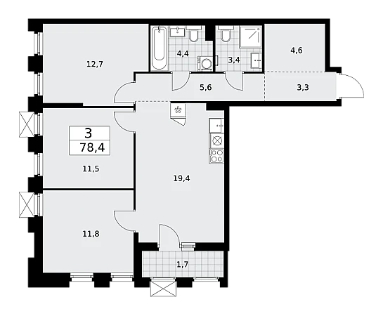 Купить 3к квартиру 78 м² в ЖК Деснаречье