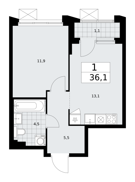 Купить 1к квартиру 36 м² в ЖК Деснаречье