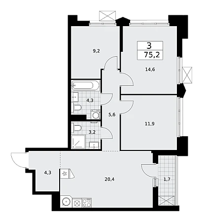 Купить 3к квартиру 75 м² в ЖК Деснаречье