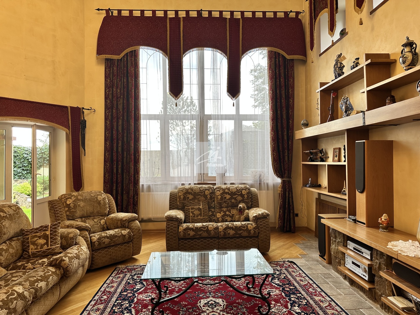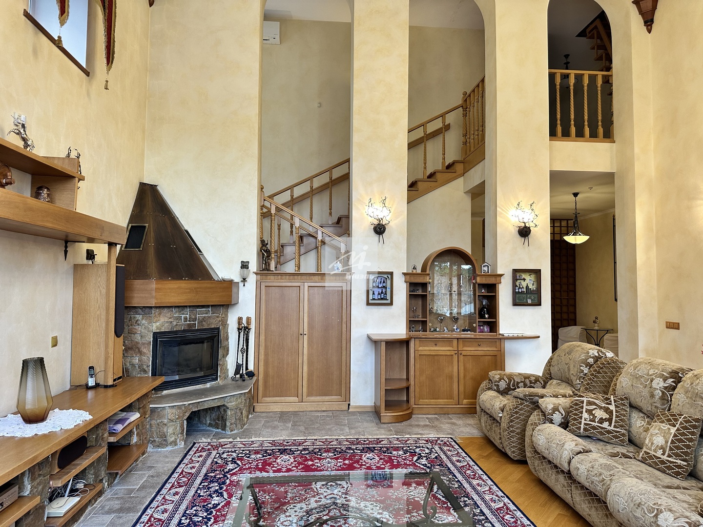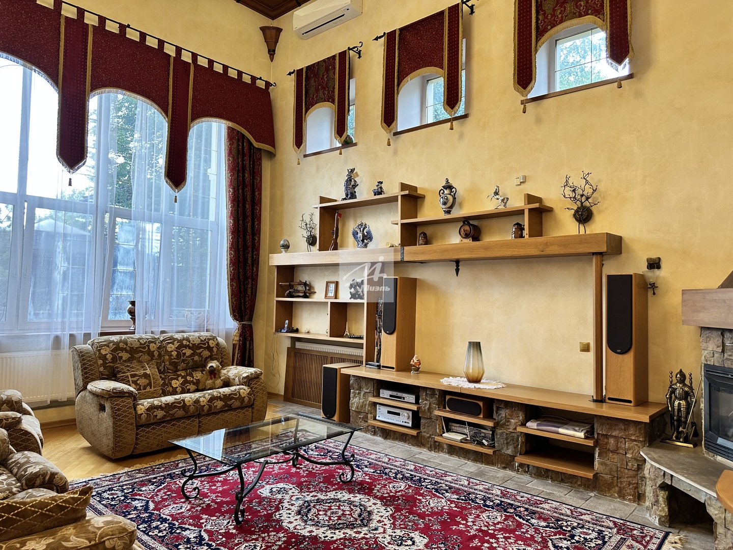 Полностью меблирован, вся бытовая техника, включая посудомоечную машину. В доме установлены кондиционеры, камин, много света и окон.