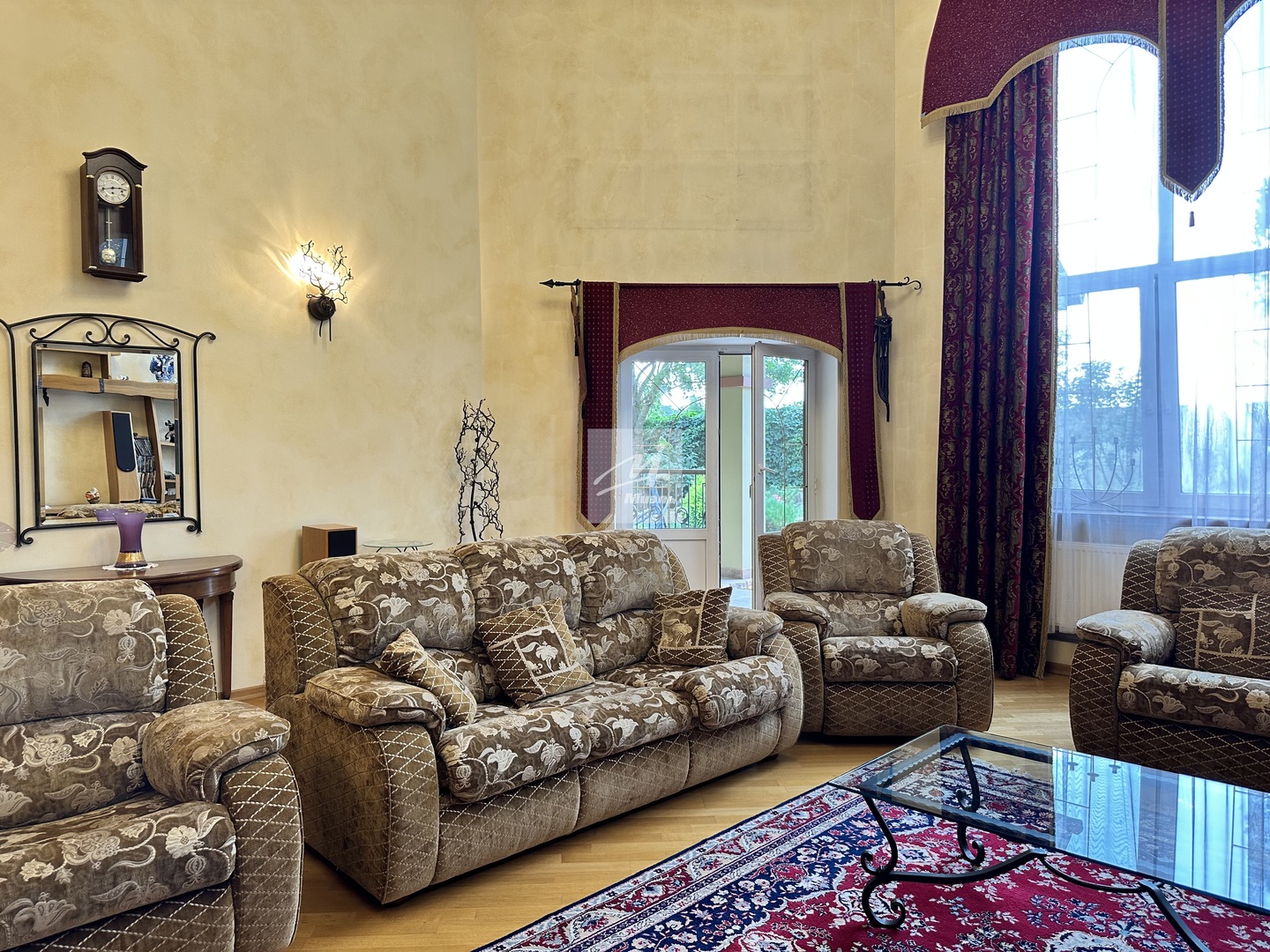 Дом огорожен кованным забором, автоматические ворота, видеонаблюдение, профессиональная охрана, КПП.