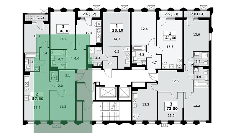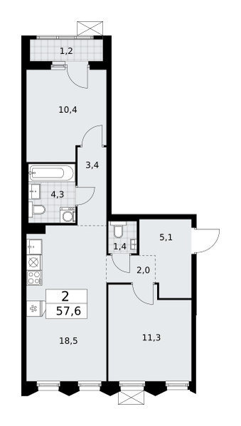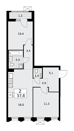 Купить 2к квартиру 57 м² в ЖК Деснаречье