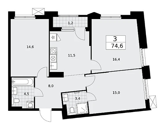 Купить 3к квартиру 74 м² в ЖК Деснаречье