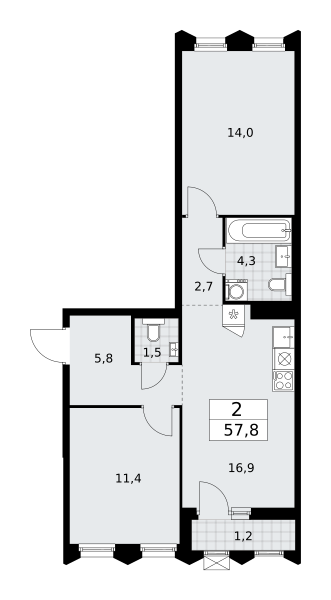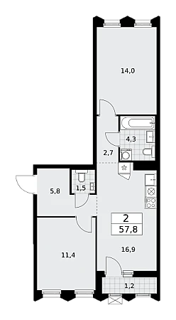 Купить 2к квартиру 57 м² в ЖК Деснаречье