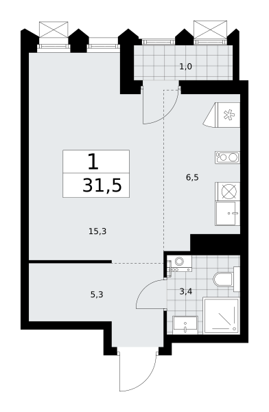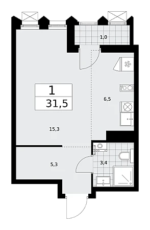 Купить 1к квартиру 31 м² в ЖК Деснаречье