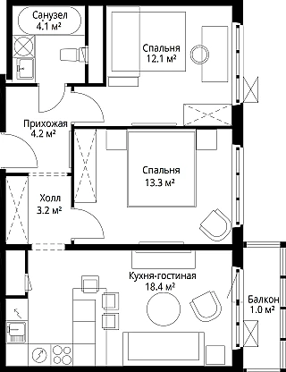 Купить 2к квартиру 46 м² в ЖК Деснаречье