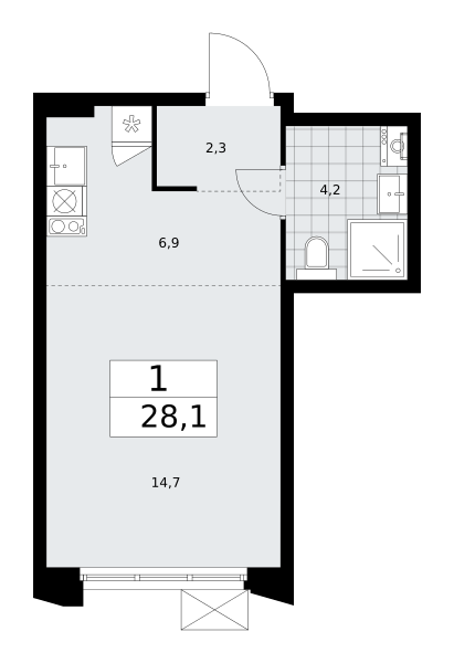 Купить 1к квартиру 28 м² в ЖК Деснаречье