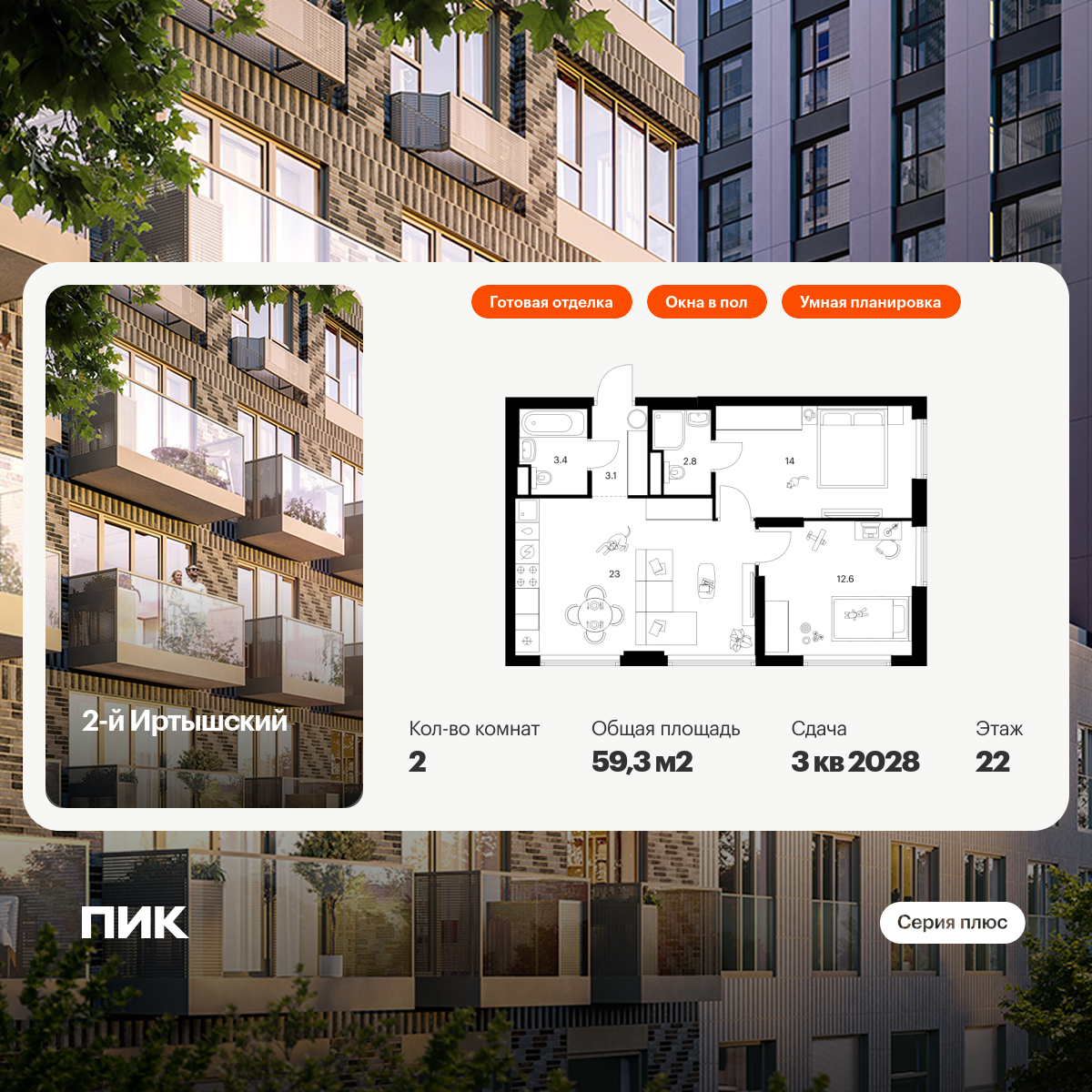 Отделка дизайнерская. Есть варианты квартир с предчистовой отделкой white box и без отделки в других корпусах ЖК.