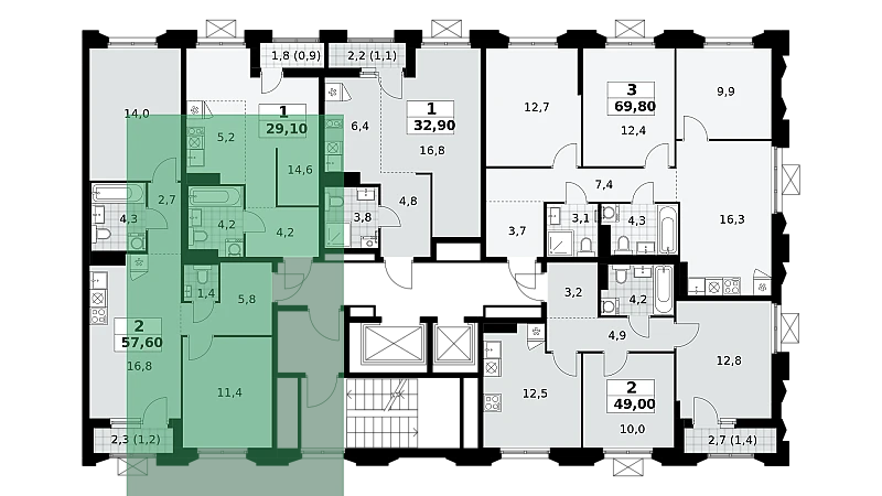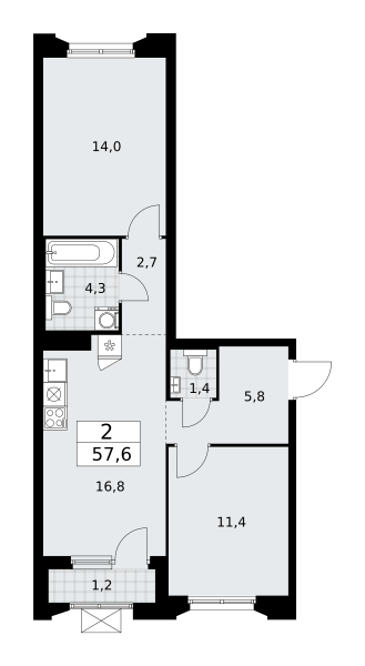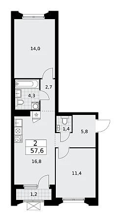 Купить 2к квартиру 57 м² в ЖК Деснаречье