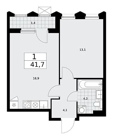 Купить 1к квартиру 41 м² в ЖК Деснаречье