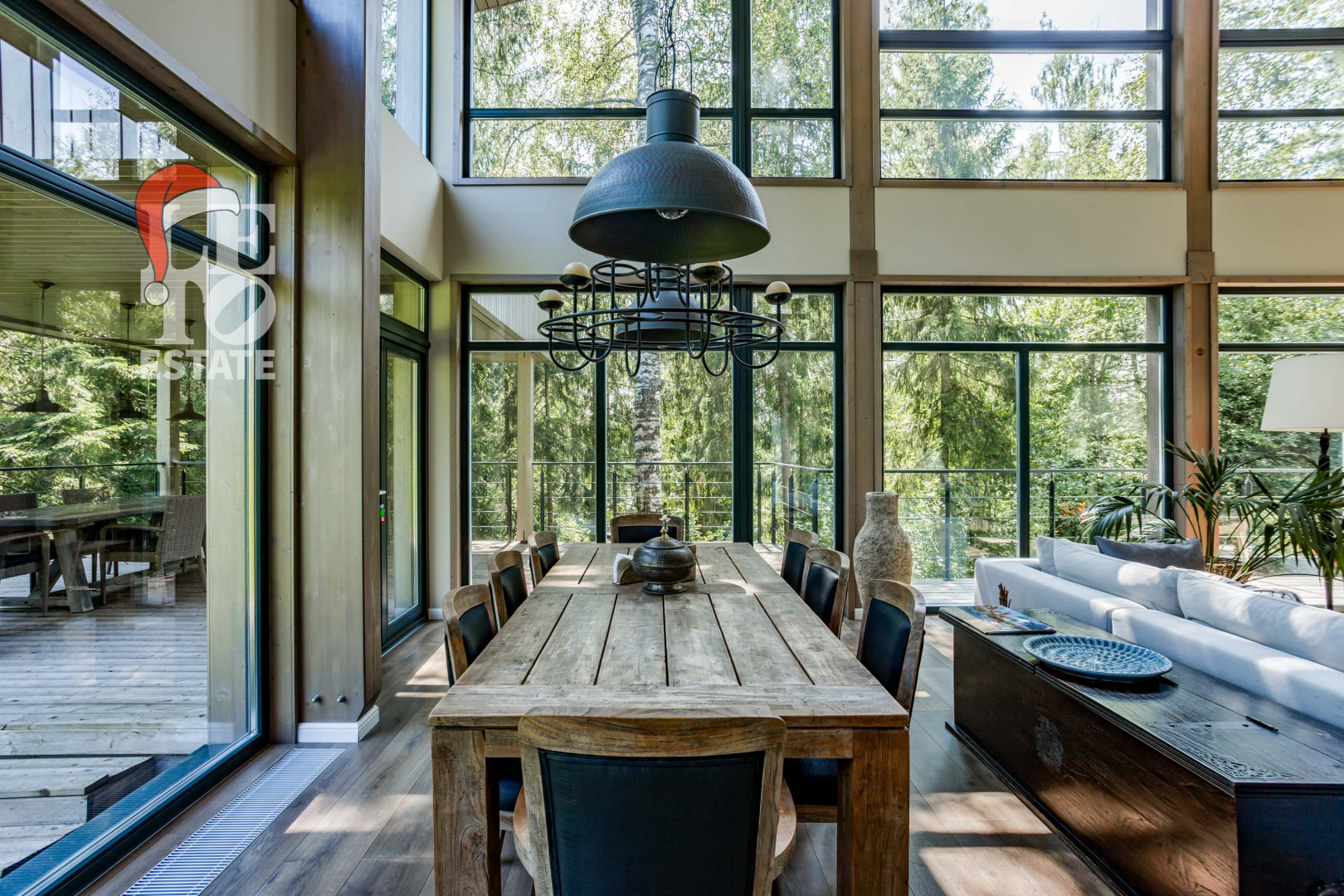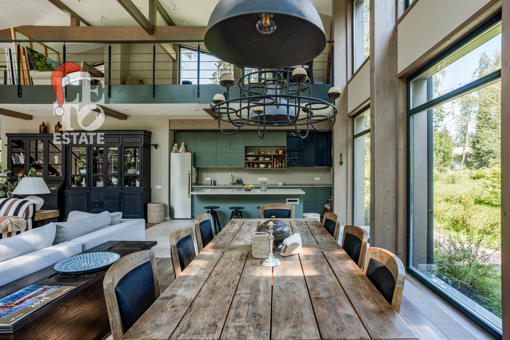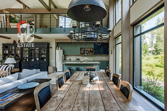 Дом построен по индивидуальному проекту в 2020 году в стиле фахверк. За счет второго света пространство гостиной получилось большим и открытым, наполненным светом и простором. В каждой спальне есть санузел, гардеробная и выход на террасу. Внутренняя отделка выполнена в сдержанных тонах, дом отапливается электрическим котлом. В гостиной есть дровяной камин. Дом полностью мебелирован, готов для проживания, не требует дополнительных вложений.