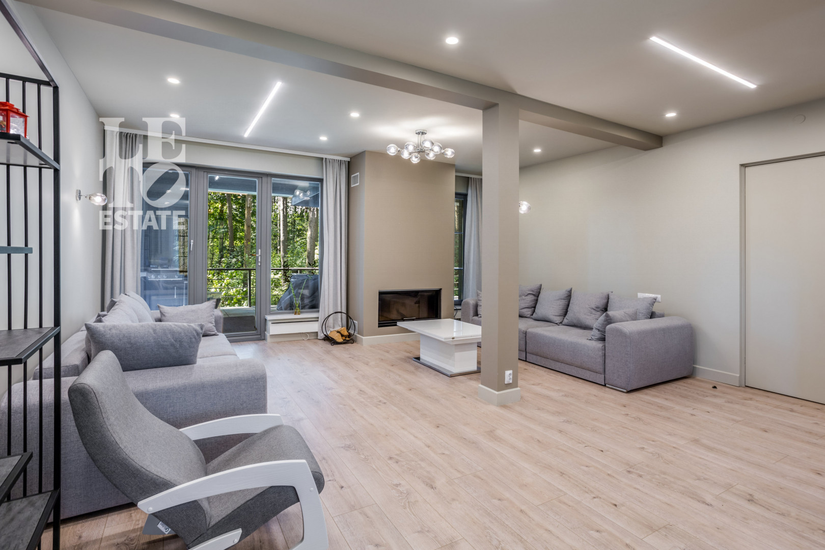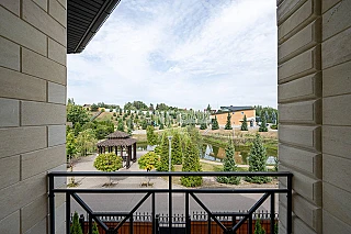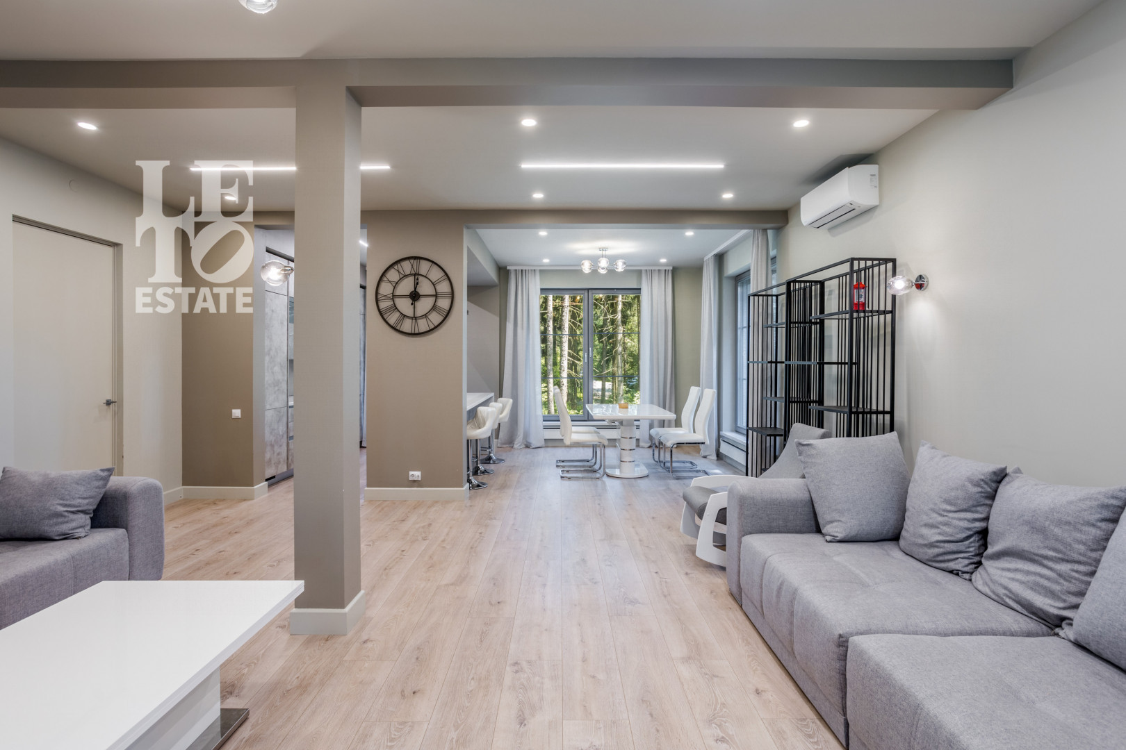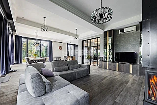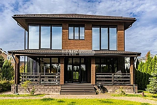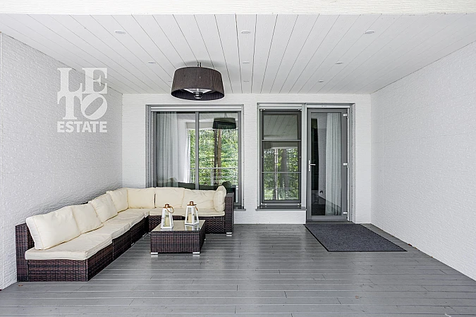 Дом построен по индивидуальному проекту в 2020 году в современном стиле. В каждой спальне есть санузел, гардеробная и выход на собственную террасу. Внутренняя отделка выполнена в сдержанных тонах, установлены деревянные стеклопакеты. Дом отапливается электрическим котлом.