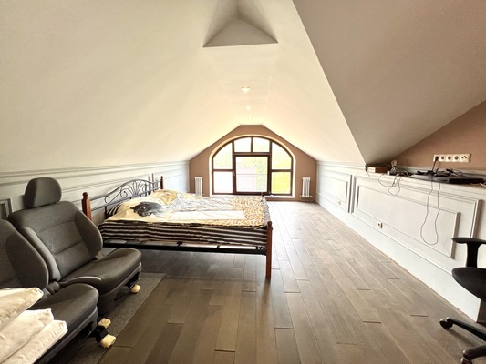 Капитальный дом на два этажа с мансардой (мансарда как полноценный третий этаж) с железобетонными перекрытиями. Фундамент - железобетонная плита плита 30 см, песчаная подушка, отсыпка гравием.