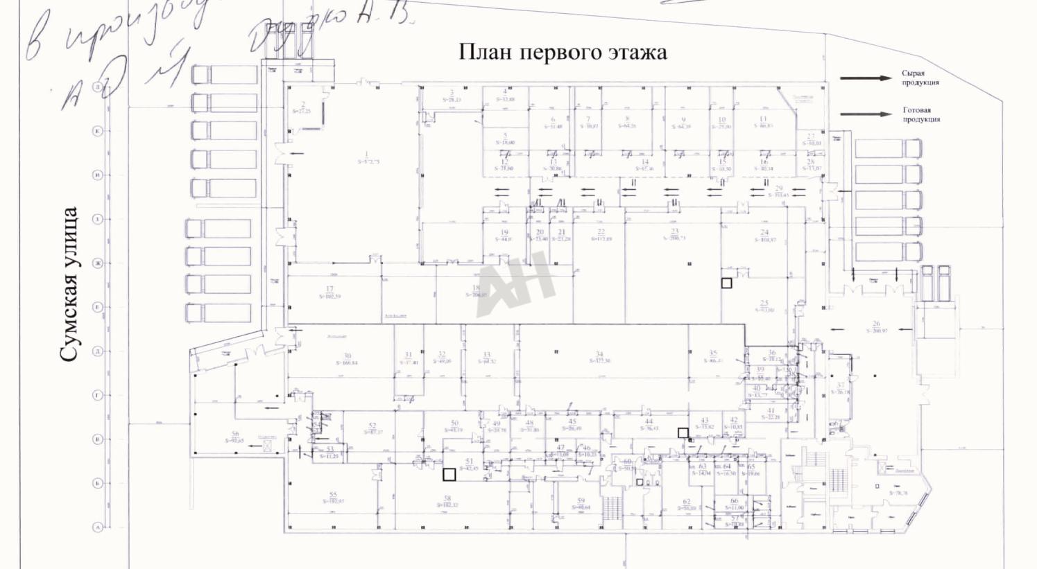 Рабочая высота 9,3 м, шаг колонн 12х24 м, нагрузка на пол 10 т/м2. Возможность приема большегрузов (еврофура), заезд внутрь. Погрузо-разгрузочные ворота на уровне отм. +0,00 здания. Пандус для малотоннажного транспорта.