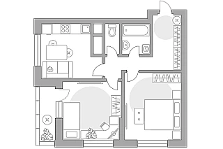 Отделка дизайнерская. Есть варианты квартир с предчистовой отделкой white box и без отделки в других корпусах ЖК.