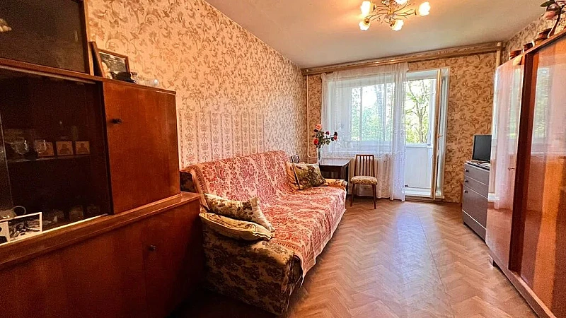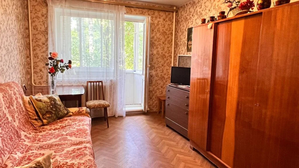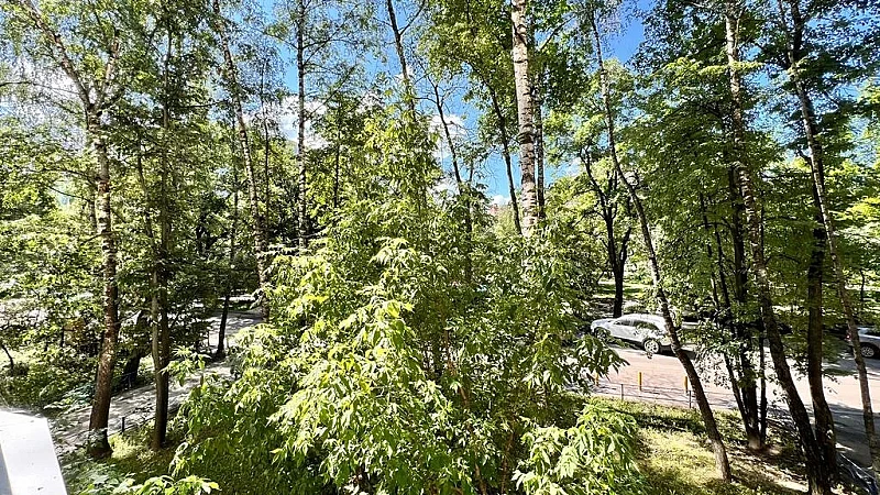 Мебель может остаться в квартире после продажи. Окна выходят на две стороны дома, открывая вид на ухоженный двор и зеленую территорию.