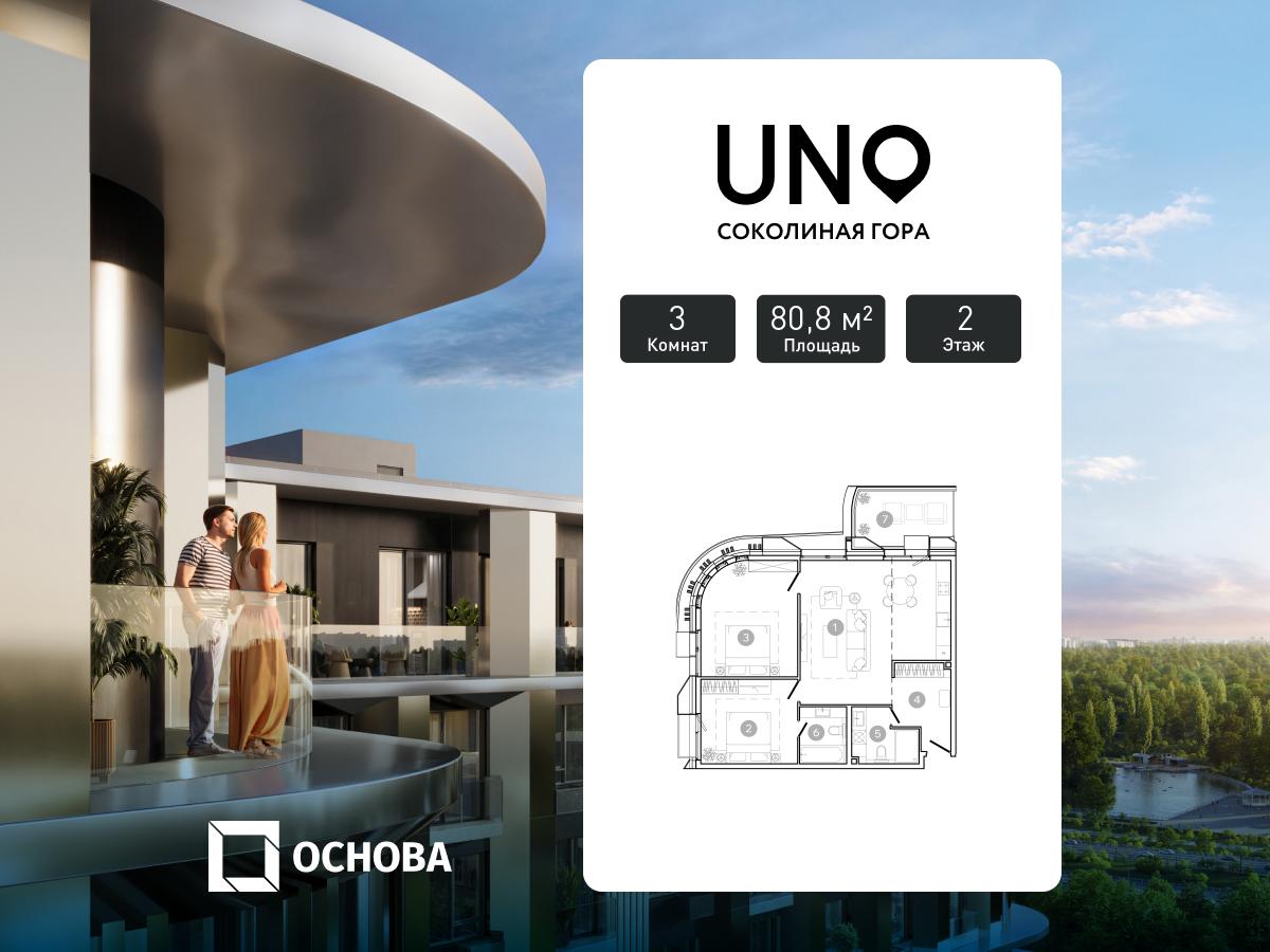 Купить 3к квартиру 80 м² в ЖК UNO.Соколиная гора