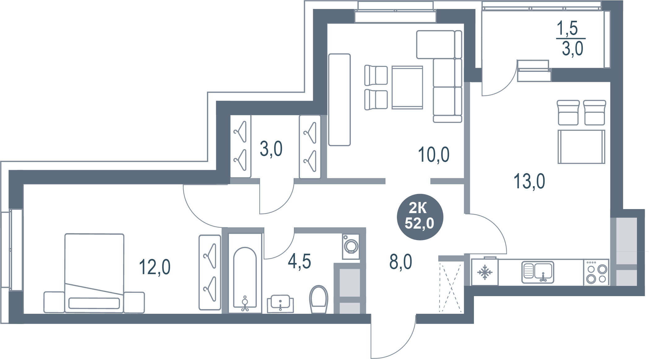 52 м²