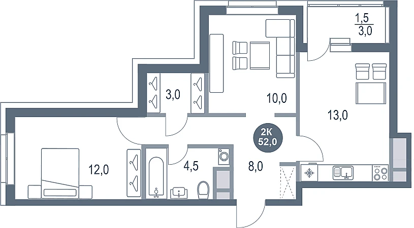Купить 2к квартиру 52 м² в ЖК Русич Новые Котельники