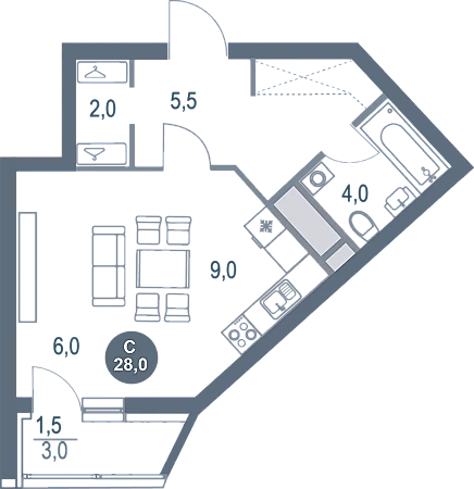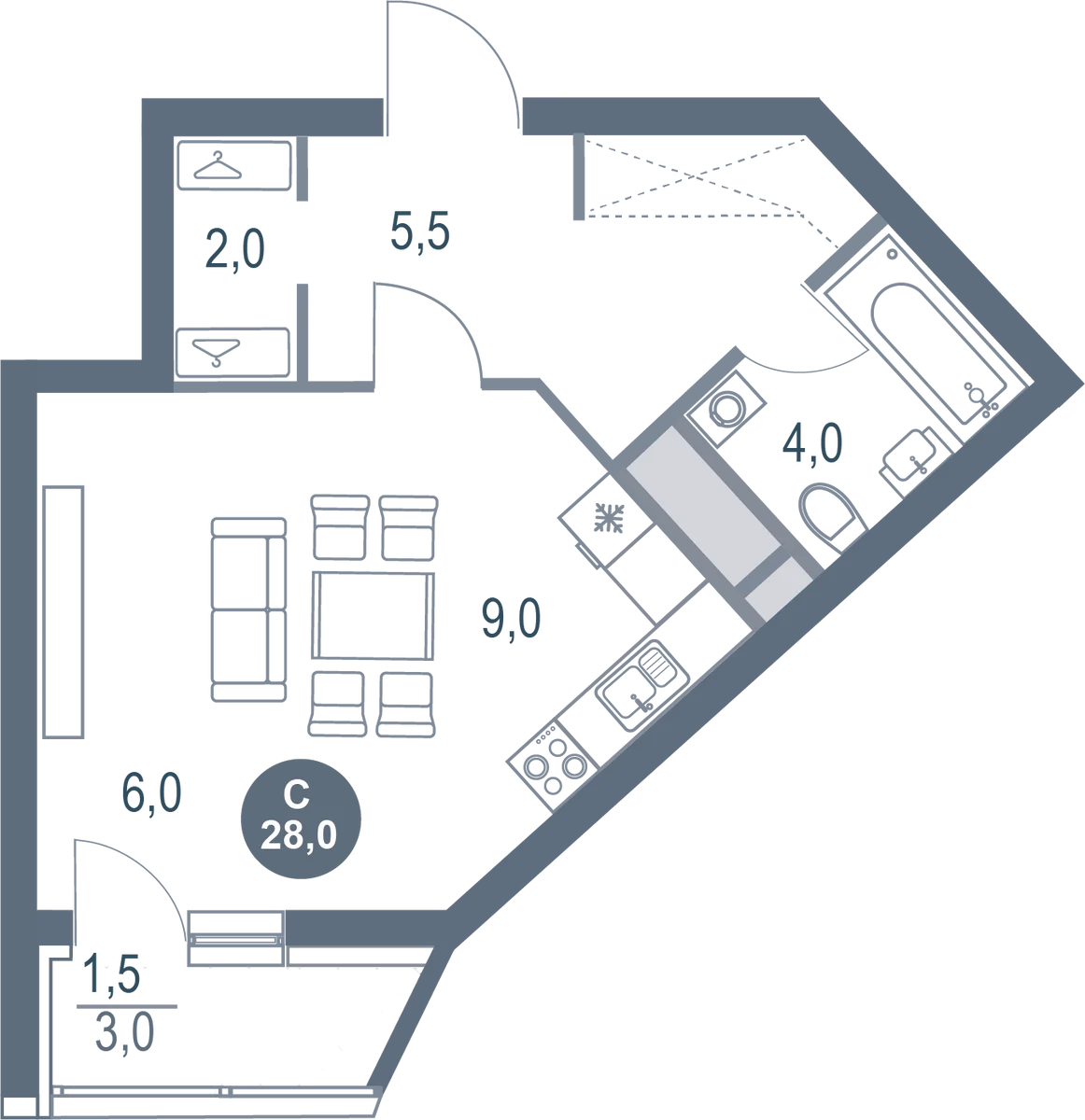 28 м²