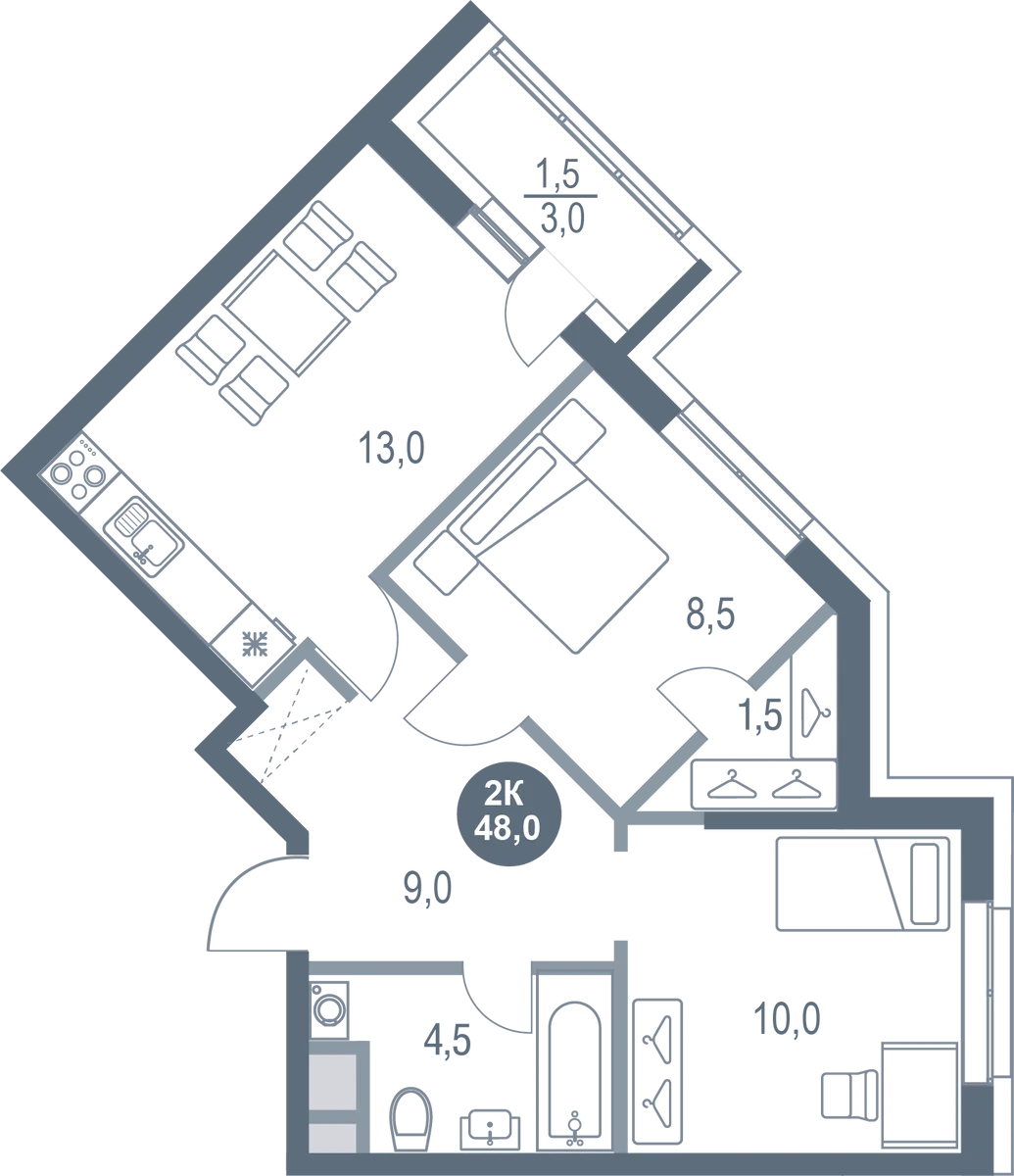 Купить 2к квартиру 48 м² в ЖК Русич Новые Котельники