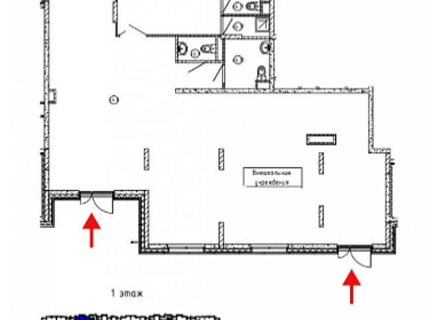 . В помещении 4 входа.Помещение располагается на углу 1 линии ЖК, а также на въезде в ЖК, высокий проходной и проездной трафик - обеспечен. Есть место для рекламы, а также витрина и зона для разгрузки.