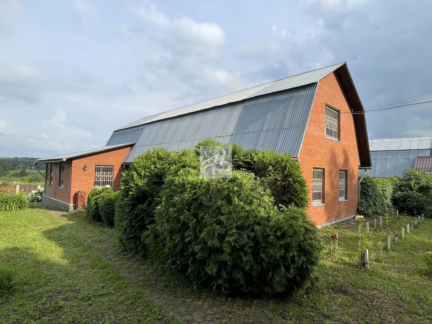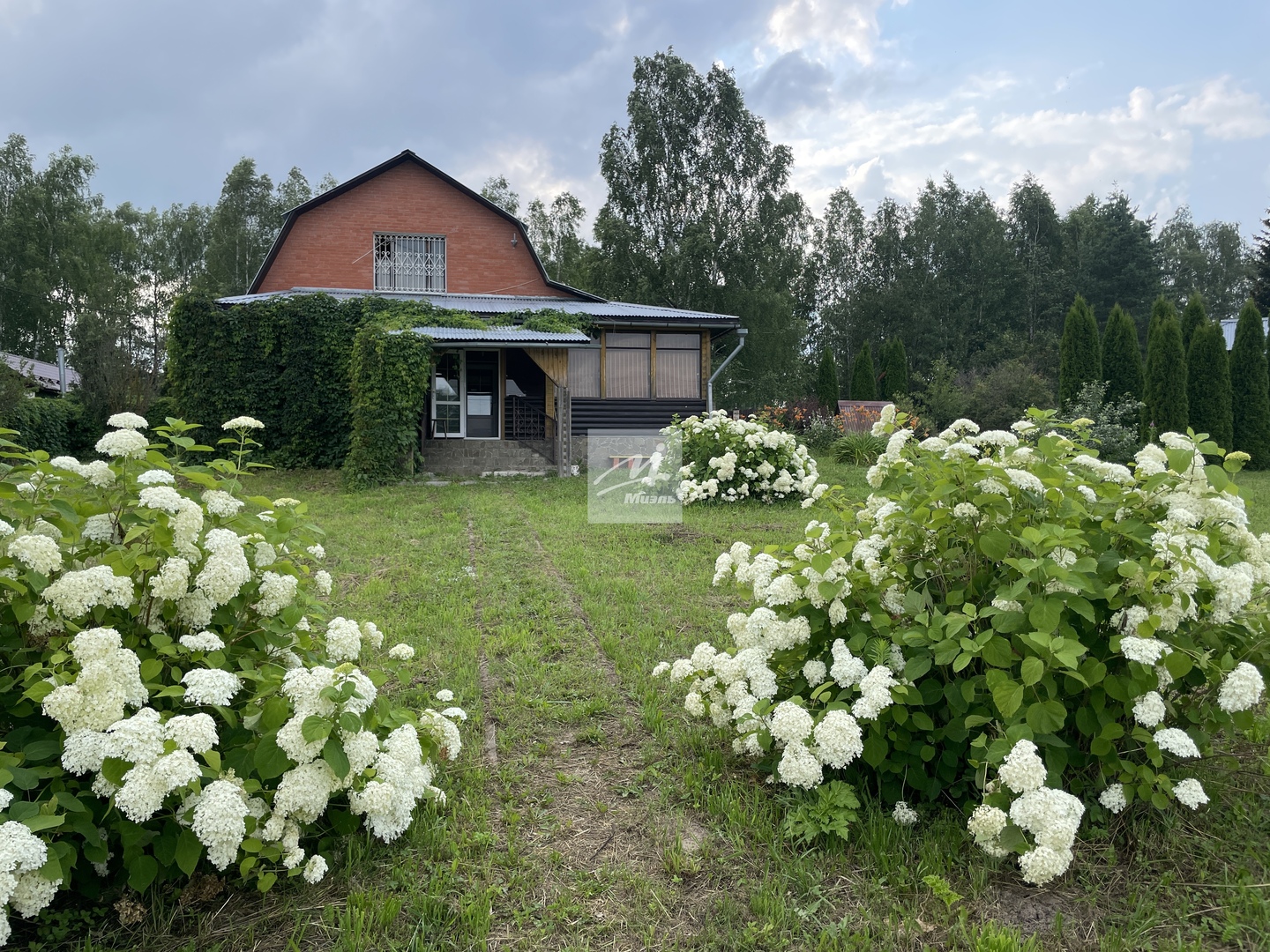 Материал стен - брус, отделка - облицовочный кирпич, внутри обшит вагонкой. Фундамент - монолитный , ленточный. Кровля -оцинкованный металлопрофиль. Прописка возможна.