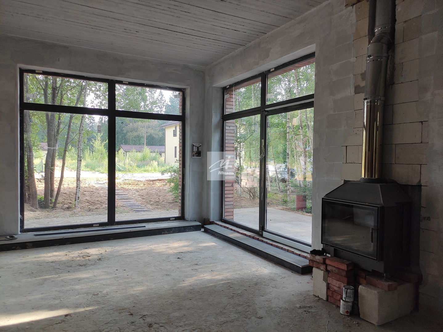 В доме установлены панорамные металлические итальянские окна фирмы Newtec, окна Kaleva, фальцевая кровля фирмы Grandline, камин. Без мебели.