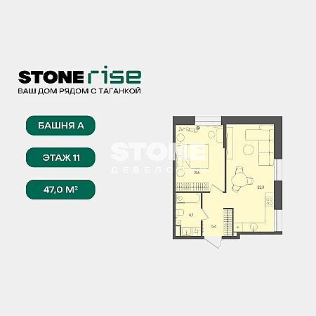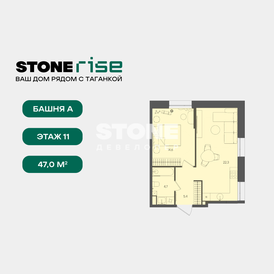 Купить 1к квартиру 47 м² в ЖК STONE Rise