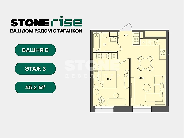 Купить 1к квартиру 45 м² в ЖК STONE Rise