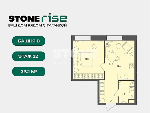 Купить 1к квартиру 39 м² в ЖК STONE Rise