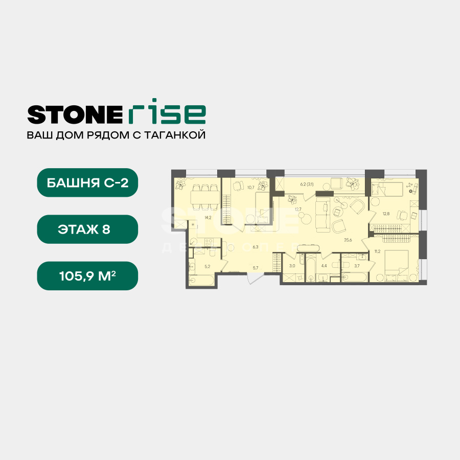 Купить 4к квартиру 105 м² в ЖК STONE Rise