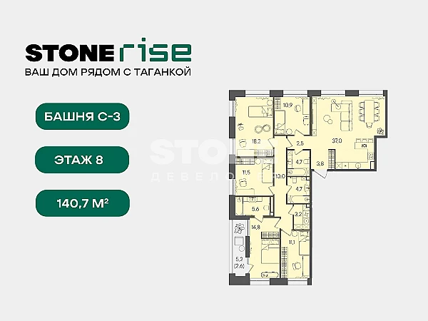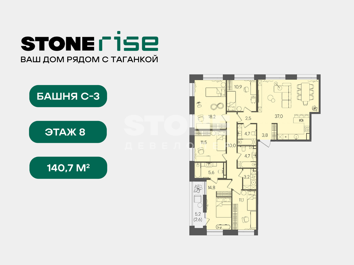 Купить 5к квартиру 140 м² в ЖК STONE Rise